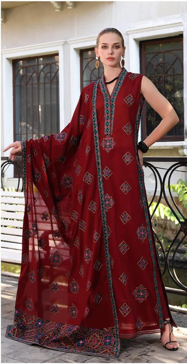 Dhanak 3PC Embroidered With Full Embroidered Shawl-129